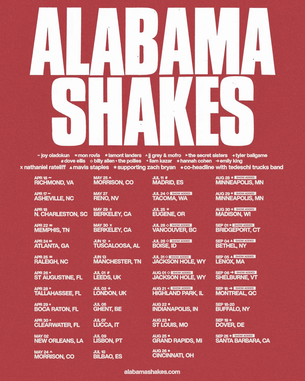 ALABAMA SHAKES - 2025/2026 Tours